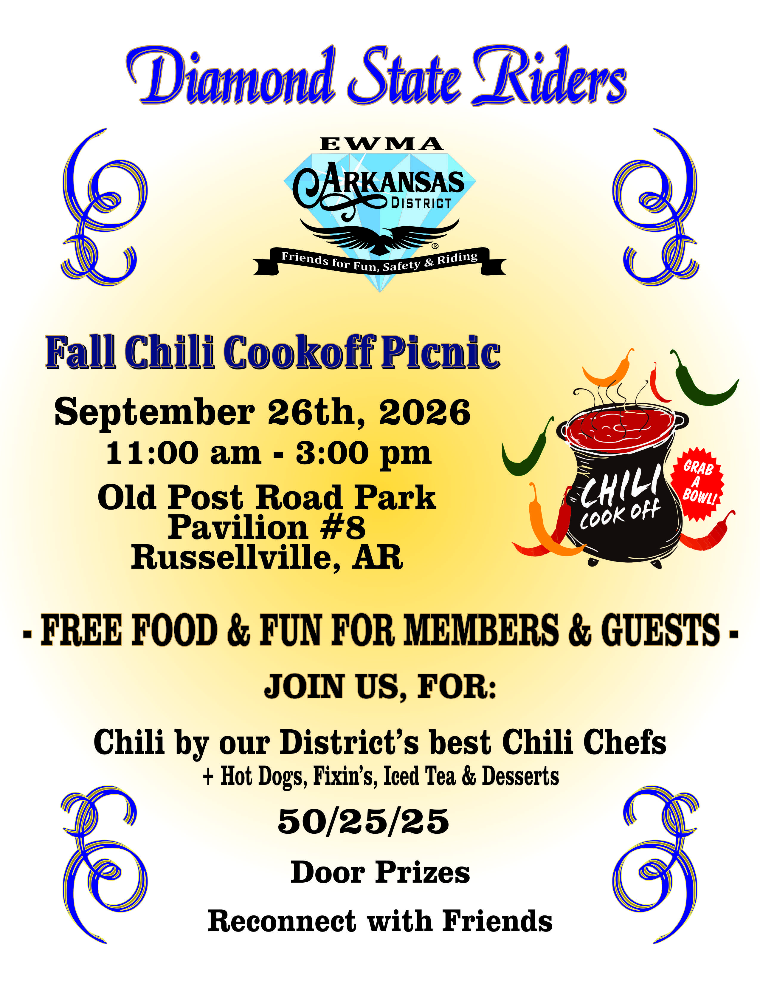 September 26, 2026 - Fall Chili Cookoff & Picknic - Russellville, AR - Flyer